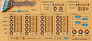 The Soundbytes Sympathizer is a new and versatile audio effect. It is based on a tunable comb filter bank and extends the concept to further explore this very specific and rewarding domain of sound creation.
